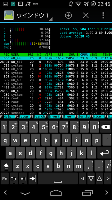 PCのようにCtrlやAltキーが利用可能なフルキーボードです。端末エミュレーターの利用やソースコードの編集で活躍します。