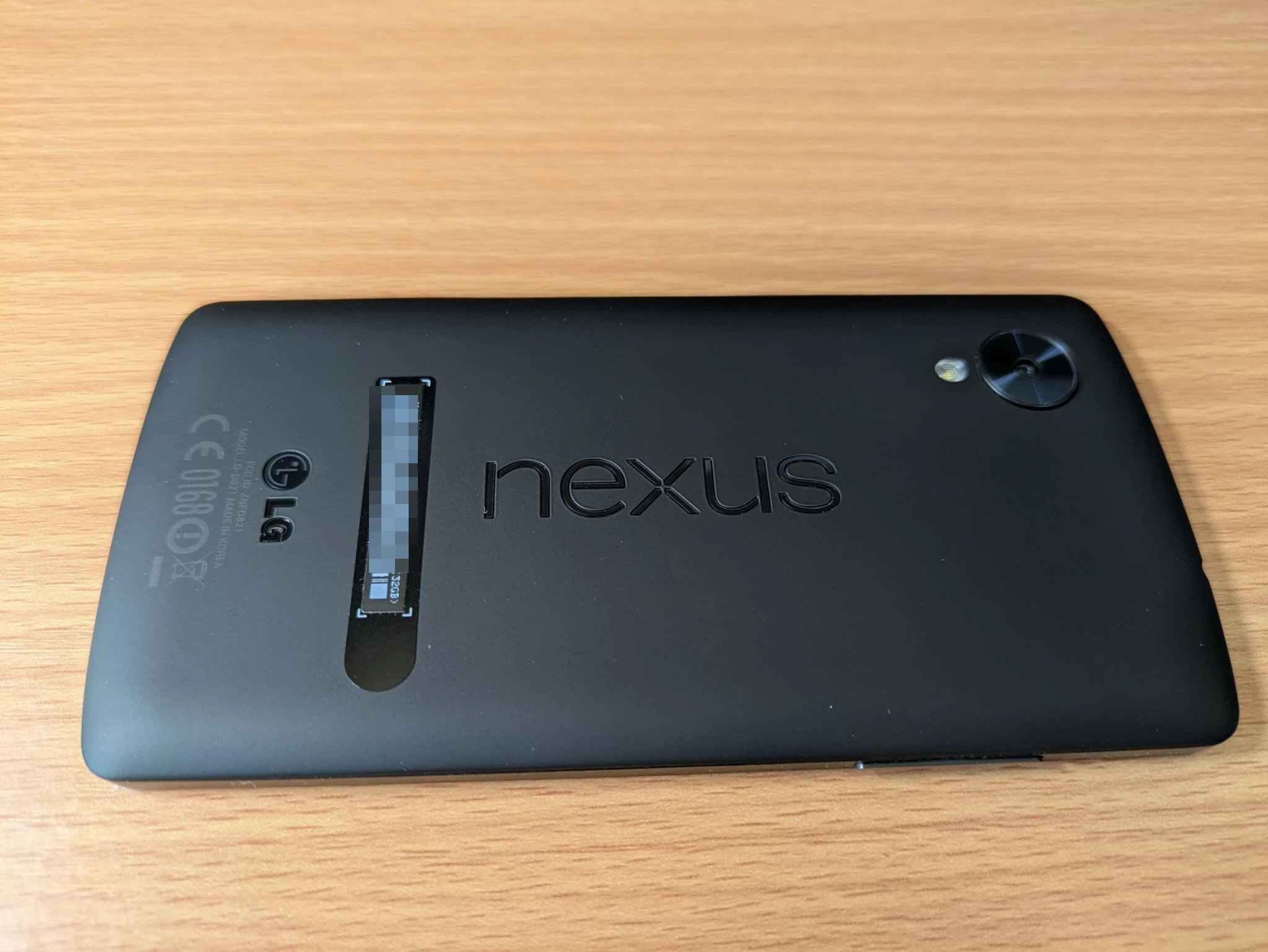 Android 4.4を使ってみたかったので2013年発売のNexus 5を入手しました。未使用品ですが、長い期間保管されていたので外装のゴムの部分が若干ベタついています。